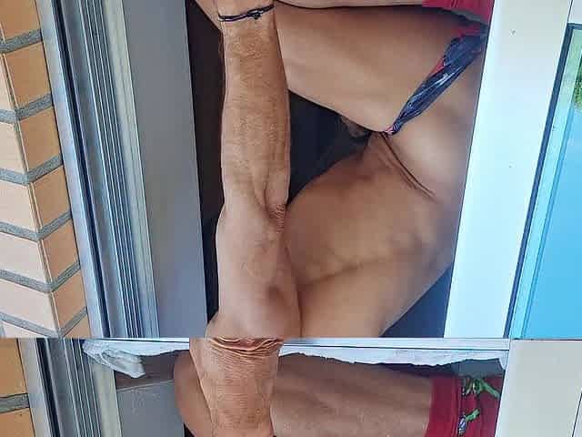 Sexy Dude with large ramrod cumming 2 times in the balcony