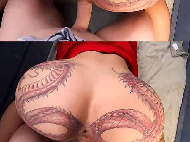 A not experienced hawt golden-haired banged outdoors by the pool by a tattooed man
