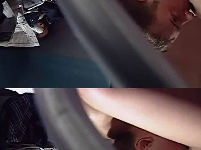 Hairy brunette hair sucks and bangs rod on the educate with a voyeur