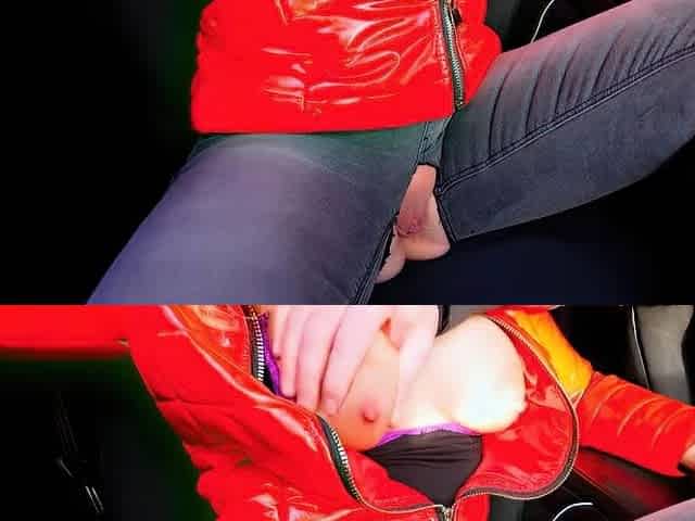Breasty Stepsister in Constricted Jeans Humping on Knob in the Car
