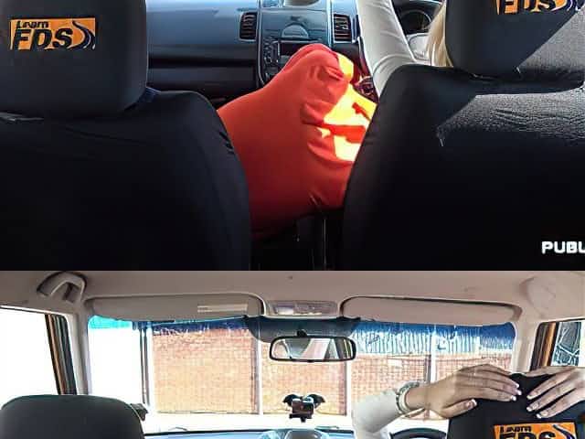 Bigtit english teacher riding black cock in car