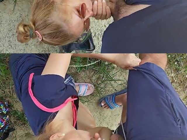 Awesome outdoors orgy and cocksucking contest of Russian couples