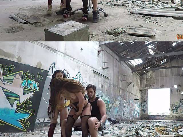 Pretty blonde girl PUBLIC sex street gangbang by guys with big dicks in broad daylight