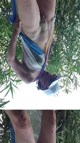 Hot teen sunbathing outdoors