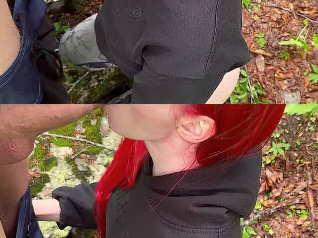 Отсосала член друга во время прогулки в лесу - Отсосала член на природе