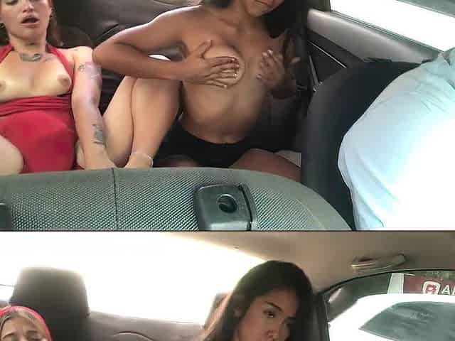 pair of beauties masturbate in the car on the way home.