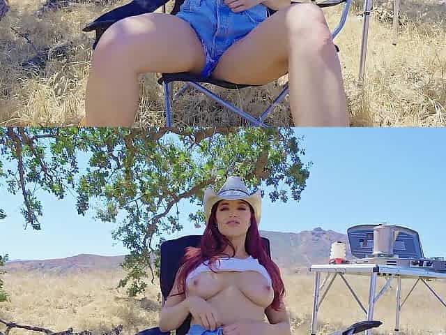 Cowgirl Jayden rubs one out for u at the Campsite