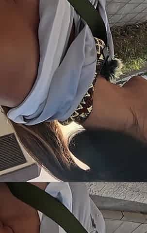 BEACH ADVENTURE: ideal pink vagina bare on passenger seat on a busy beach road drive
