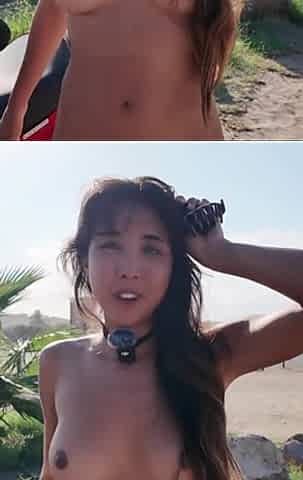 Super hot Asian girl is pleasuring her self outdoors