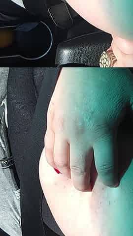 Excited wench banged the gearshift lever after masturbating in the car!