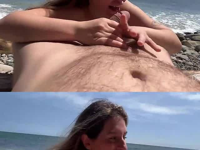 Beach POV Blowjob: Passion with Public Cumshots and Small Tits