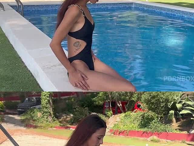 Nasty in Ibiza: Teaser POV clip of this amateur anal doxy being screwed in the booty by the poolboy.