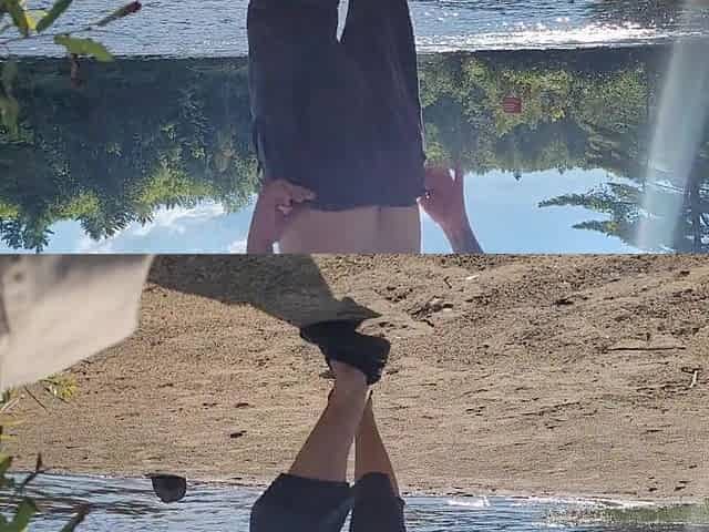 Hush buttplug on a alternative, stripped in the centre of a lake. Public and risky