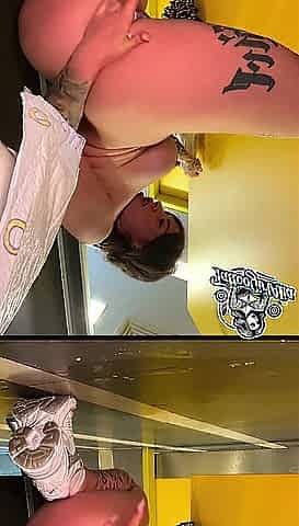 The almost all risky squirting in the males's restroom with the door open at McDonald's