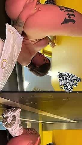 Babe Plays with Her Big Dildo in a Public Dressing Room