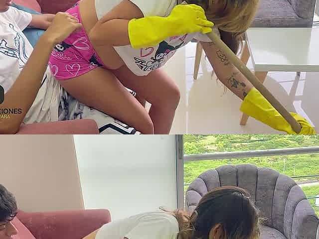 Latin chick maid asks me to pay her with a hard screw in swap for cleaning on my knob.