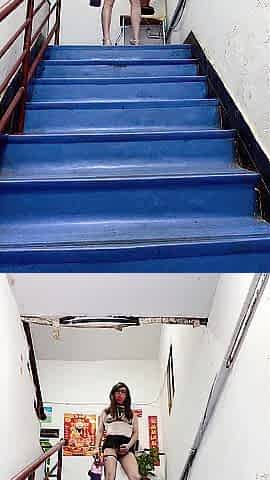 expose myself at motel stairs with vibrating egg & LED ass-plug
