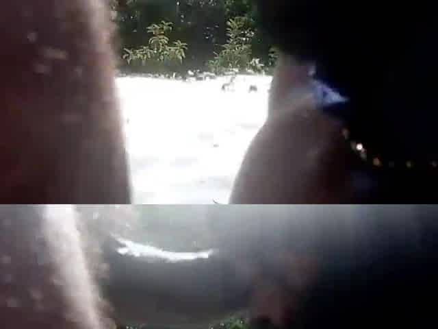 A black man in the pool fucks a fat married bitch in anal by the pool