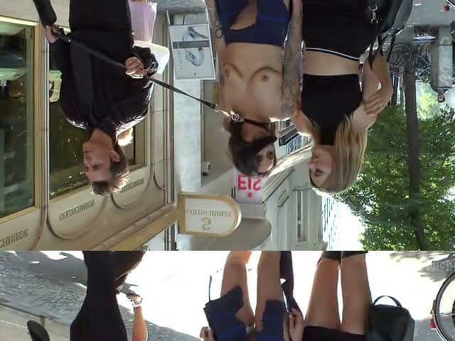Blanche Bradburry and Ally Breelsen share a cock in public
