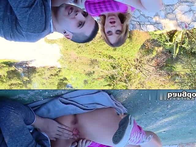 Public flashing and blowjob on nature walk
