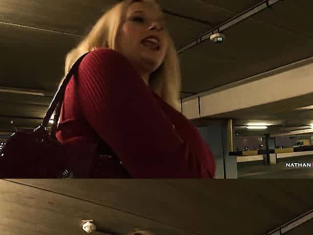 Beefcake guy ass fucks booty blondie in parking garage hard