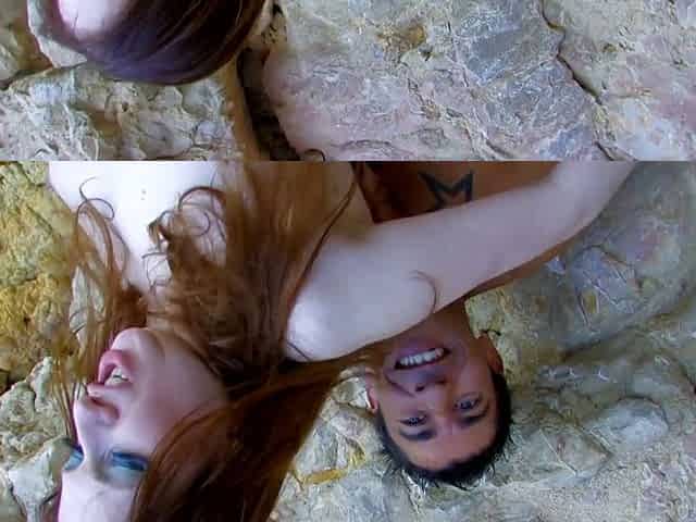 "Redhead anal dyke seduced outdoor by strapon lesbian"