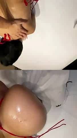 Sexy Latina in a bikini tries anal sex in a public bathroom