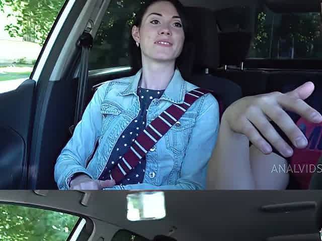 Honey gets sucked off and gets her pussy fingered in the back of the car