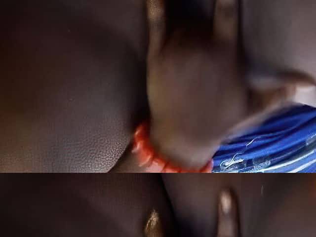 Horny fat ebony woman is masturbating alone in the woods