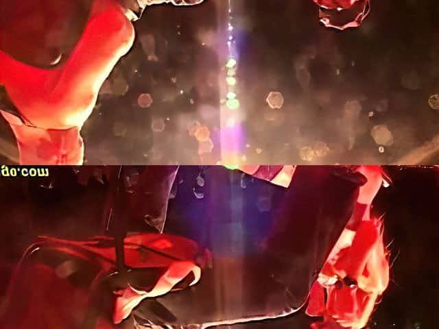 2 male dancers strip woman on stage