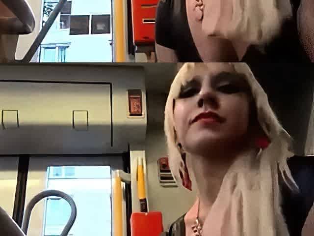 confident girlfriend gives nervous boyfriend blowjob on bus