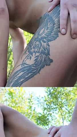 horny couple fucking anal in public forest