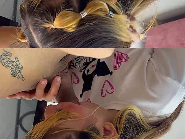 Mientras mi hermanastra juega con mi movil, yo le enseño como tiene que jugar con mi polla dura.