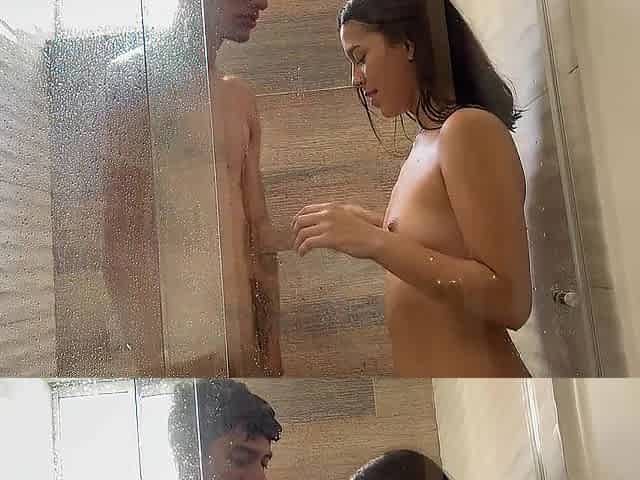 Espió a mi timida hermanastra en la ducha y termino follando su estrecho coño.
