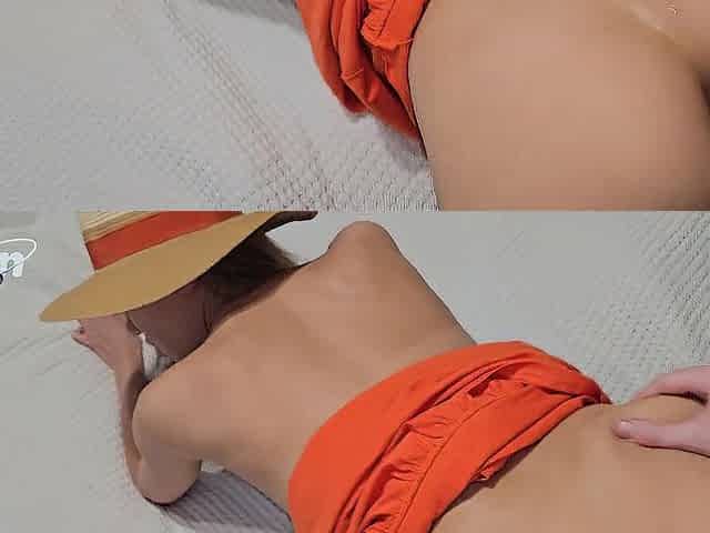 Le doy un delicioso masaje a mi pequeña hermanastra hasta que la pongo caliente y termino follandola