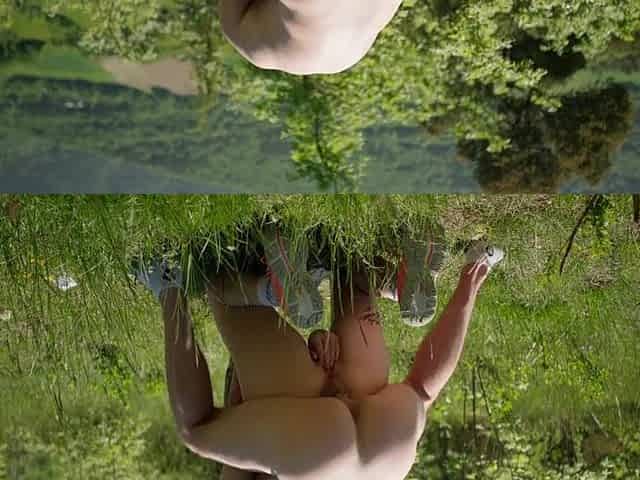 Фембой гуляет голий на улисе с дилдом в попе