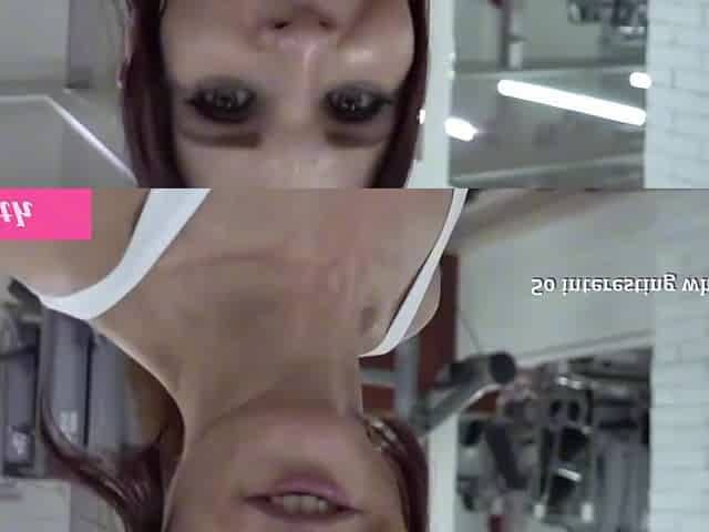 Athletic milf with big tits exposes her rack while working out in gym