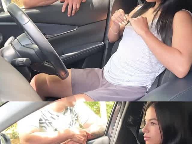 App driver takes a ride with a young lady and makes her squirt with pleasure