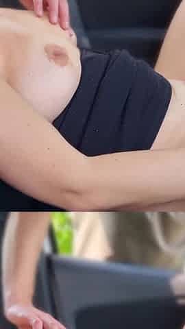 Breasty girl teasing me with her large breasts and hairless cunt and let me risky screw her outdoor