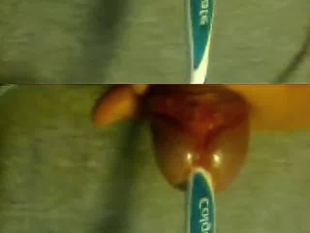 Urethral insertion with toothbrush