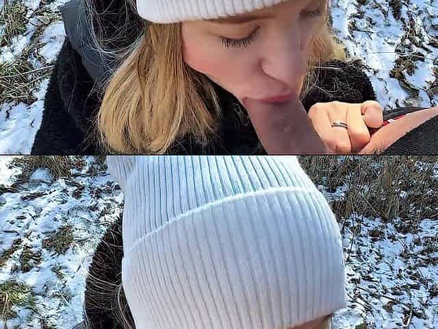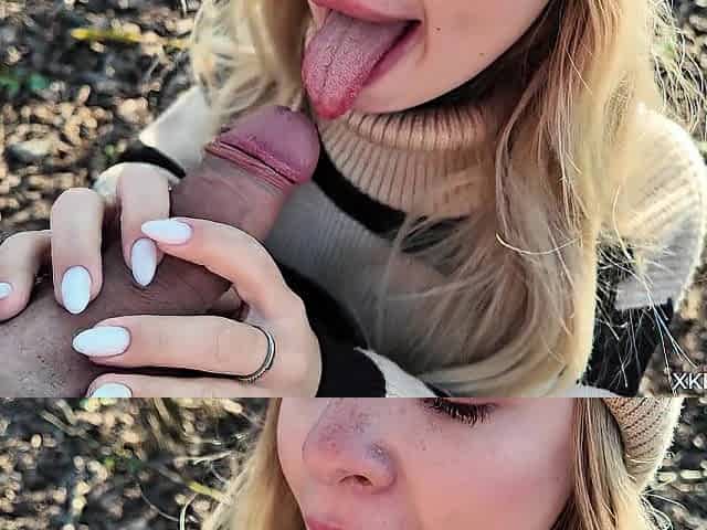 Russian golden-haired gave a oral pleasure in the forest and left, showing her butt! I'm cheerful about this!