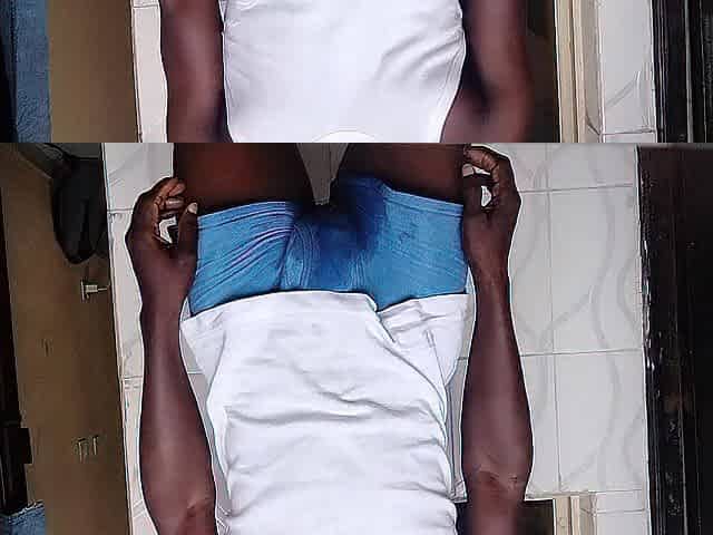 Pant pissing hung peeing anew in his blue trunk