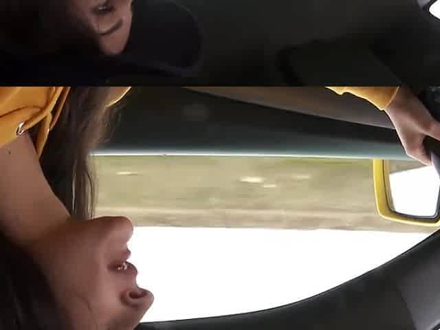 Panty-less driver milks herself in the car while driving