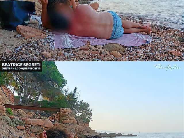 Mysterious voyeur captures a mature lady pleasuring herself on the beach until she reaches climax