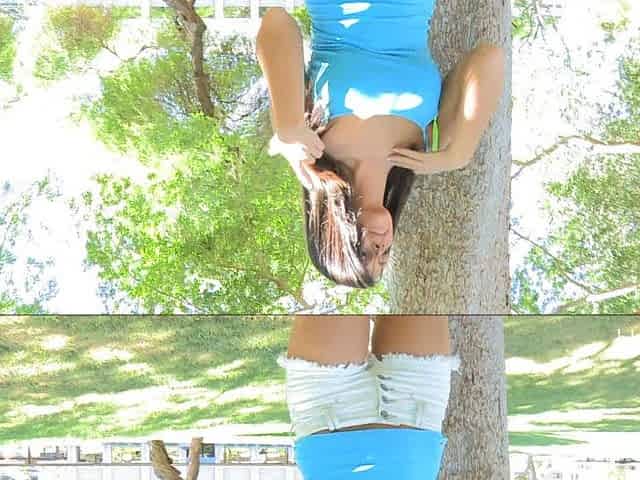 Slutty bitch gets naked outdoors in hot solo scene