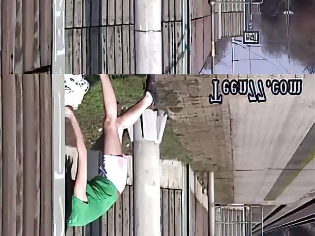 She shows her bald pussy in the public place