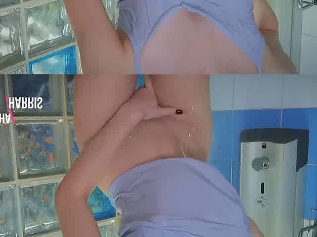 Seductive beauty pleasures herself in a milky shower revealing pussy and buttocks!