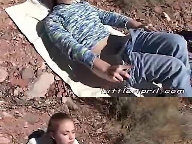 Little April goes outdoors to masturbate