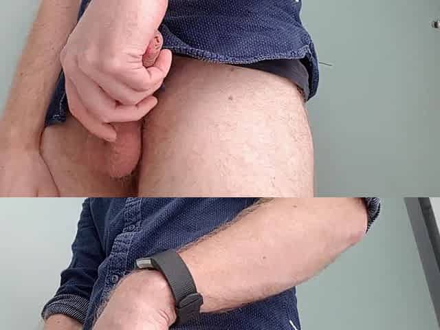 Stroking uncut dick and cumming twice in a public restroom