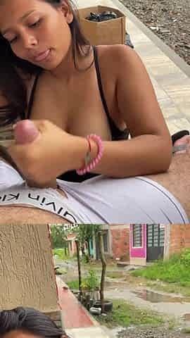COLOMBIAN FLOOZY SUCKS A DICK ON THE STREET AND IS CAUGHT BY HER NEIGHBOUR